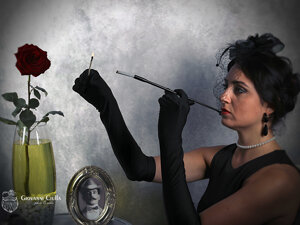 Mi porta al progetto shooting " Anni 30 " quell'epoca vintage dove si potrebbe individuarla come una battaglia artistica di grande vivacità, dove tutti gli stili e tutte le tendenze fluttuavano vorticosamente , passando dal classicismo al futurismo dall'espressionismo all'astrattismo. Si sfoggiava in quell'epoca il cosidetto " chic " e, la categoria di chi poteva appartenere a questa serie era certamente una categoria privilegiata.