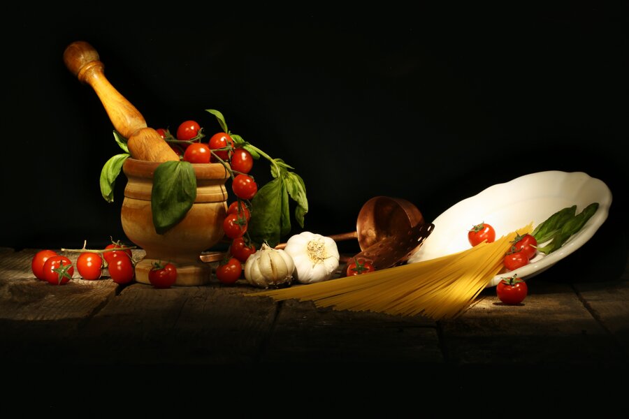 La particolare rappresentazione del piatto, parte attraverso la costruzione di una precisa panoramica costituita da elementi che danno vita all’arte culinaria, l’occhio del fotografo in questo caso, organizza minuziosamente il set preposto, la ricerca dei componeti del set, valorizza il piatto stesso come valorizza il prodotto che si deve lanciare sul mercato.